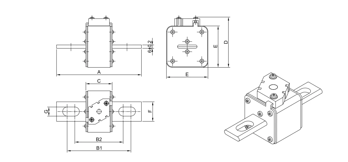 Высакахуткасны засцерагальнік на 1250 В з прамым канцом квадратнага корпуса